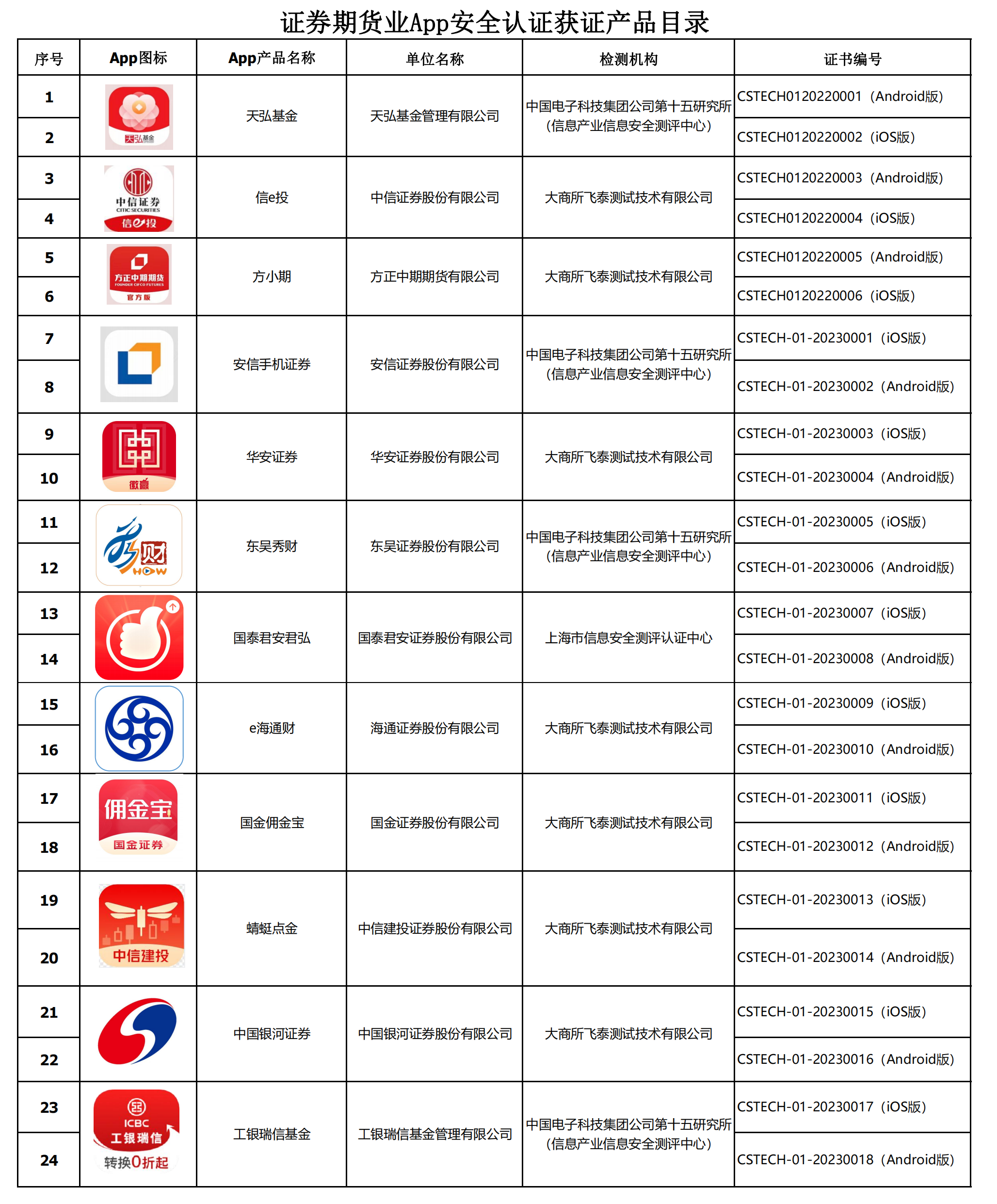 经过审核,工银瑞信基金管理有限公司的“工银瑞信基金”App符合行业标准《证券期货业移动互联网应用程序安全规范》(JR/T 0192—2020)及《证券期货业移动互联网应用程序安全检测规范》(JR/T 0240—2021)要求,通过证券期货业App安全认证,获得认证证书。