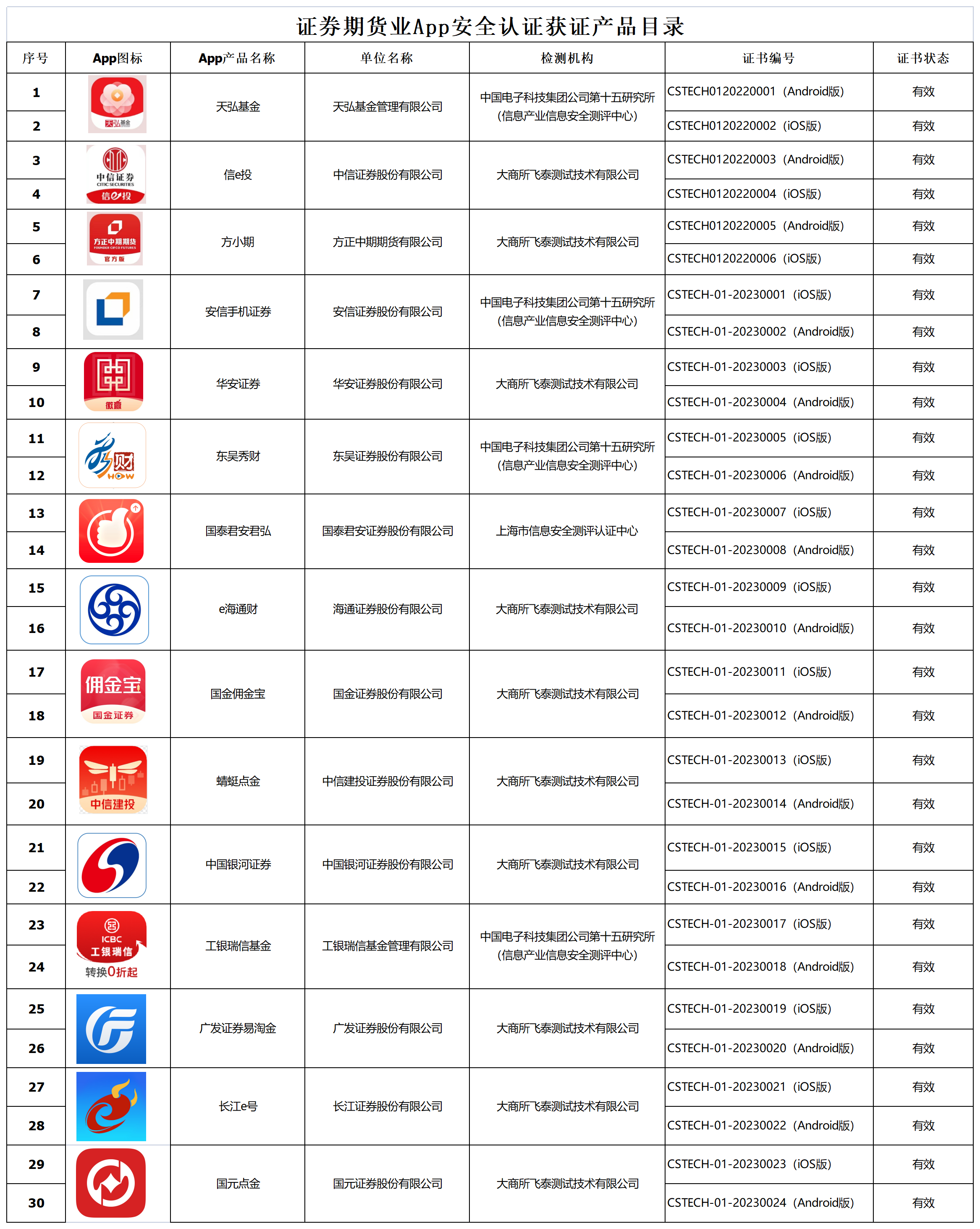 经过审核,国元证券股份有限公司的“国元点金”App符合行业标准《证券期货业移动互联网应用程序安全规范》(JR/T 0192—2020)及《证券期货业移动互联网应用程序安全检测规范》(JR/T 0240—2021)要求,通过证券期货业App安全认证,获得认证证书。
