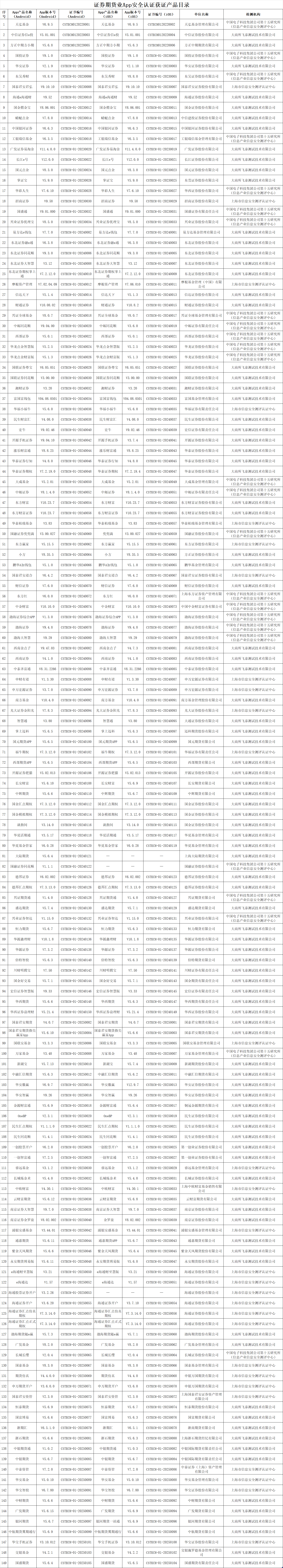 中航期货有限公司的“中航期货翼期通行”App,银河期货有限公司的“银河期货(Android版)/银河期货一站通(iOS版)”App,华宝证券股份有限公司“华宝手机证券”App,交银施罗德基金管理有限公司的“交银基金”App,国盛期货有限责任公司的“国盛期货”App等通过证券期货业App安全认证,符合行业标准《证券期货业移动互联网应用程序安全规范》(JR/T 0192-2020)及《证券期货业移动互联网应用程序安全检测规范》(JR/T 0240-2021)要求,获得认证证书。