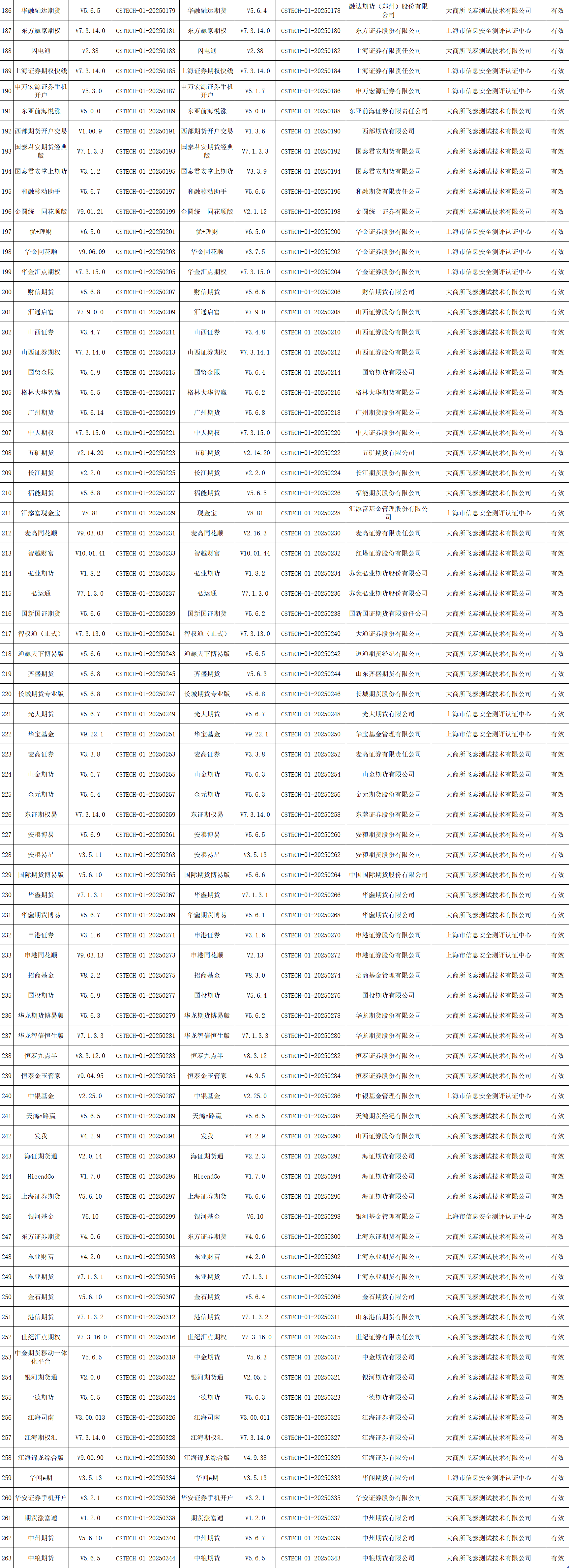 上海东亚期货有限公司的“东亚财富”App、“东亚期货”App,金石期货有限公司的“金石期货”App,山东港信期货有限公司的“港信期货”App,世纪证券有限责任公司的“世纪汇点期权”App,中金期货有限公司的“中金期货移动一体化平台(Android版)/中金期货(iOS版)”App,银河期货有限公司的“银河期货通”App,一德期货有限公司的“一德期货”App,江海证券有限公司的“江海司南”App、“江海期权汇”App、“江海锦龙综合版”App,华闻期货有限公司的“华闻e期”App,华安证券股份有限公司的“华安证券手机开户”App,中州期货有限公司的“期货涨富通”App、“中州期货”App,中粮期货有限公司的“中粮期货”App等通过证券期货业App安全认证,符合行业标准《证券期货业移动互联网应用程序安全规范》(JR/T 0192-2020)及《证券期货业移动互联网应用程序安全检测规范》(JR/T 0240-2021)要求,获得认证证书。