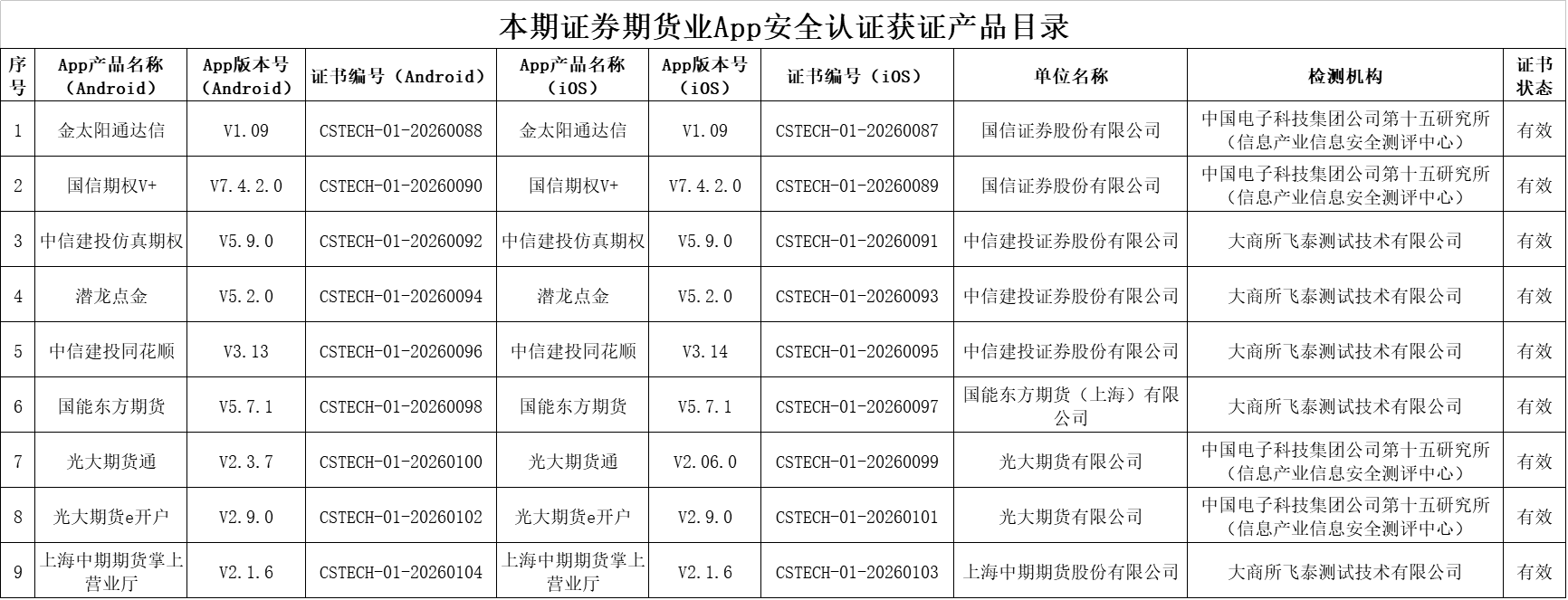 本期通过证券期货业App安全认证名单具体如下: